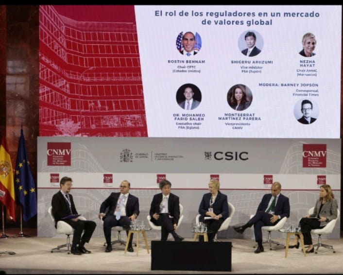 استهل الدكتور محمد فريد، رئيس مجلس إدارة الهيئة العامة للرقابة المالية، نائب رئيس المنظمة، رئيس لجنة الأسواق النامية والناشئة (GEMC)، زيارته إلى العاصمة الإسبانية مدريد، للمشاركة في فعاليات اجتماعات مجلس إدارة المنظمة الدولية لهيئات الرقابة على أسواق المال (الأيوسكو – IOSCO)، بالمشاركة في اجتماع مجموعة عمل الاستقرار المالي ولجنة التمويل المستدام.