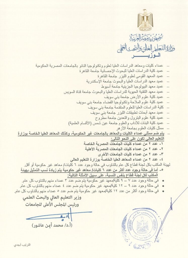 كما اختارت اللجنة الدكتور أيمن الساعي، رئيس هيئة الثروة المعدنية الأسبق وعدد من الشخصيات وعمداء الكليات وأساتذة الجامعات