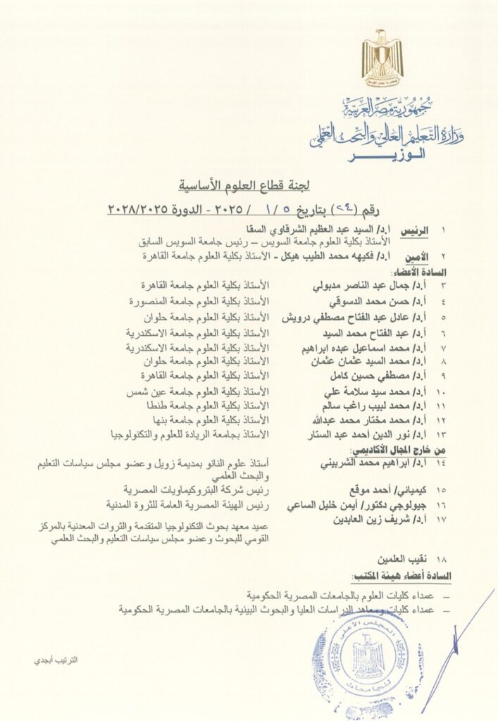 وقد أصدرت وزارة التعليم العالي والبحث العلمي قرارًا بتشكيل لجنة قطاع العلوم الأساسية، من بين تلك اللجان واختارت من ضمنها الكيميائي أحمد موقع، رئيس شركة البتروكيماويات المصرية، كأحد أبرز خريجي كلية العلوم جامعة الإسكندرية