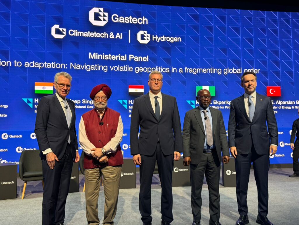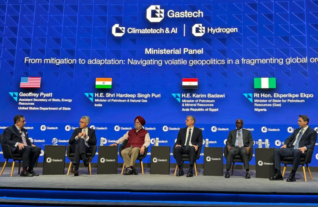 وخلال الافتتاح شارك المهندس كريم بدوي كمتحدث رئيسي في الجلسة الوزارية الافتتاحية بالمؤتمر تحت عنوان “من التخفيف إلى التكيف: التعامل مع الظروف الجيوسياسية المتقلبة في ظل نظام عالمي مجزأ” والتي شارك فيها كل من وزير البترول والغاز الطبيعي بدولة الهند، ووزير الطاقة والموارد الطبيعية التركي، ومساعد وزير الخارجية الأمريكية لشئون موارد الطاقة، ووزير الدولة النيجيري للموارد البترولية المكلف بشئون الغاز.